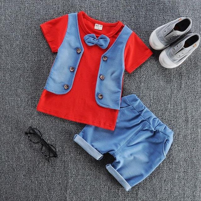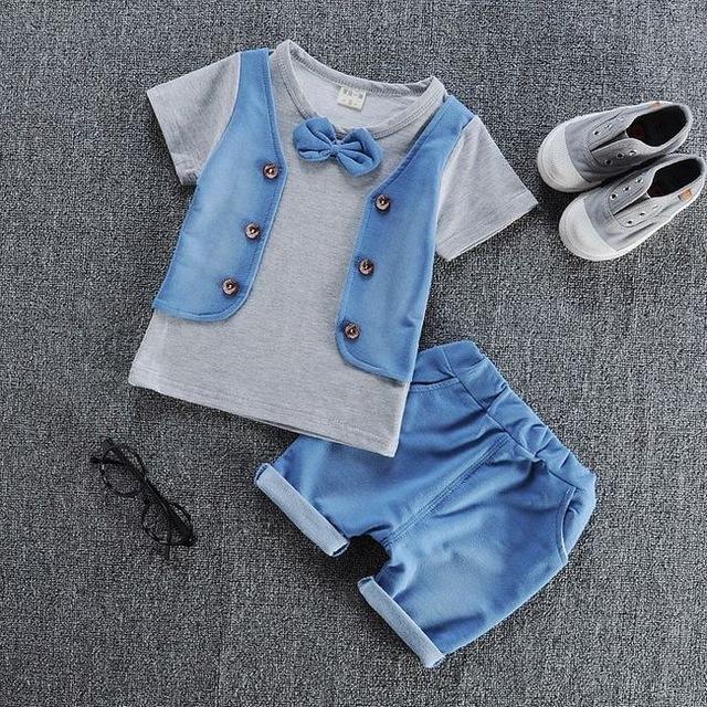 * 2 piece clothing set with denim shorts and a cute waistcoat t-shirt