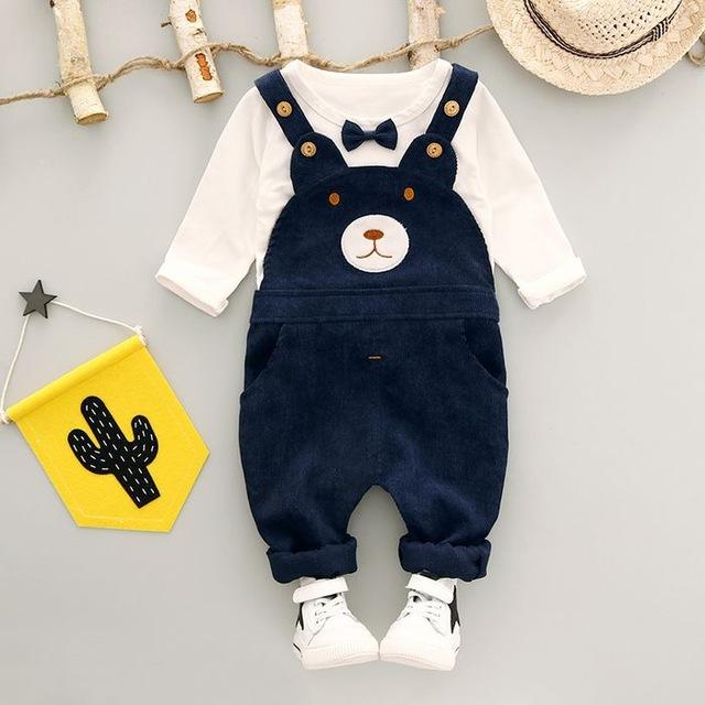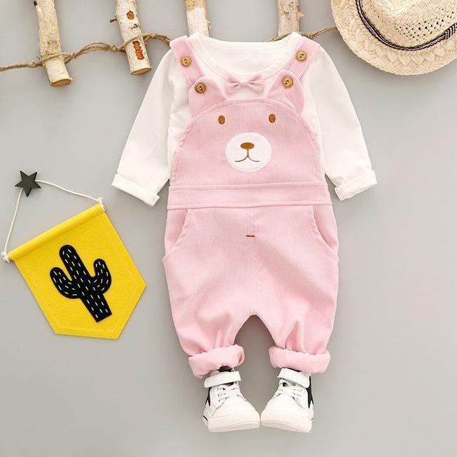 * 2 piece clothing set with a doggy design dangaree and a long sleeve t-shirt