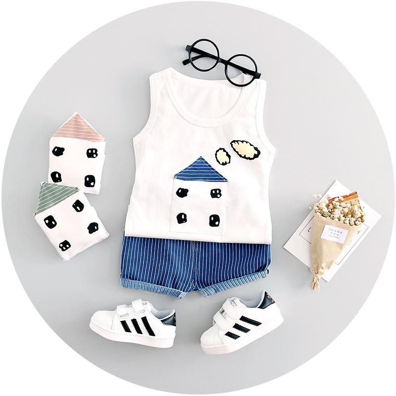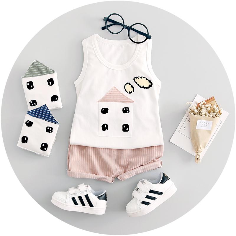 * 2 piece clothing set with shorts and a cute house printed sleeveless t-shirt