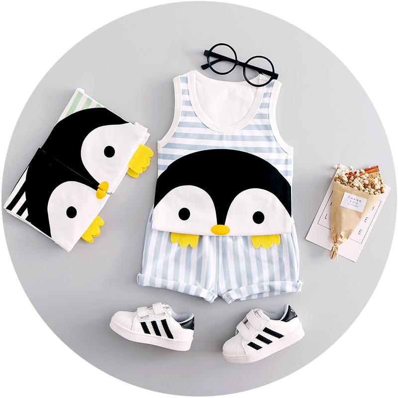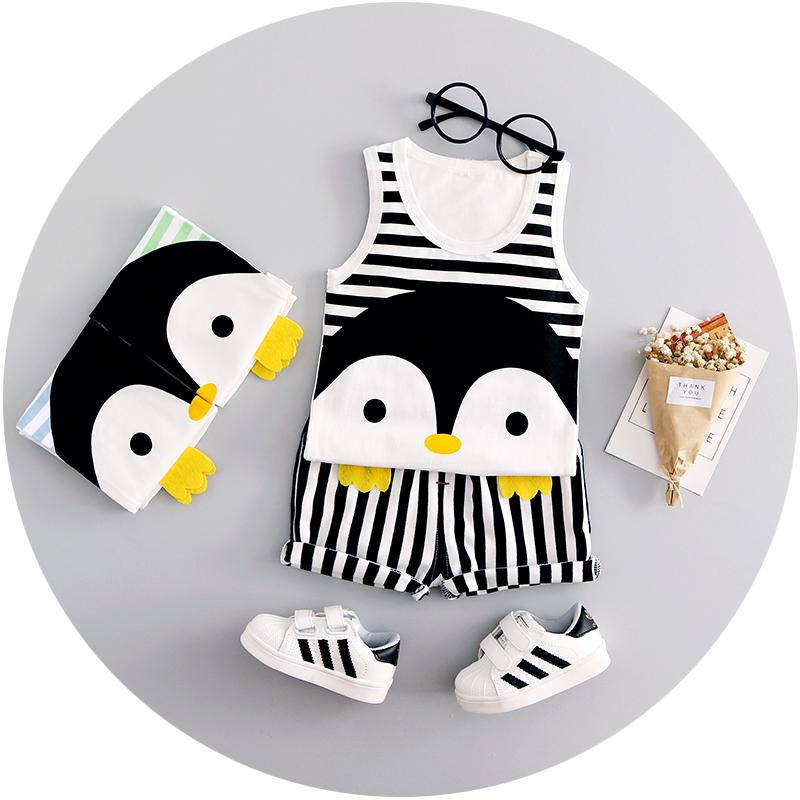 * 2 piece clothing set with striped shorts and a cute penguin printed sleeveless t-shirt
