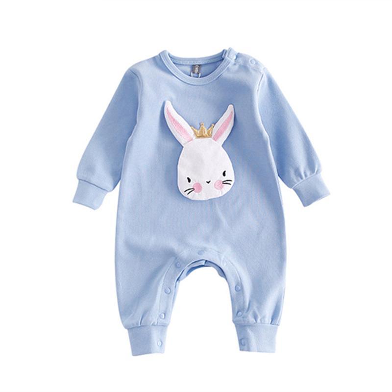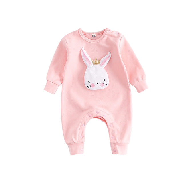 This is a cute romper with a rabbit applique. Featuring a round neck, long sleeve and snap up enclosure makes it easy for a diaper change. Little bub will feel warm in this breathable romper.