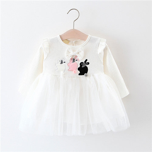 Your little bub will love the three bunnies lined up for an Easter egg hunt on this beautiful party dress. Featuring three printed rabbits with a revel waist design, and a keyhole button enclosure. The swing silhouette is a perfect example of sweet, edgy and sophisticated dress, allowing your gorgeous bub to be the little princess that she is.