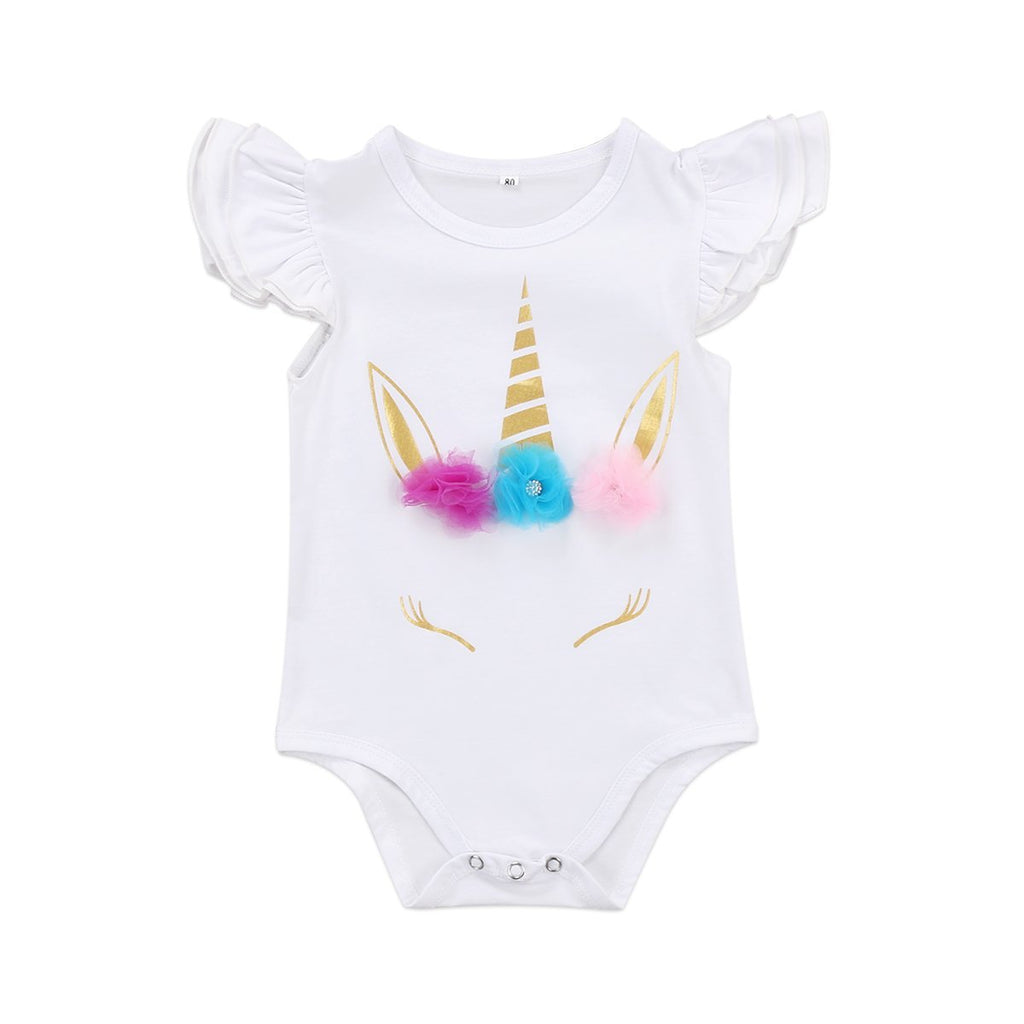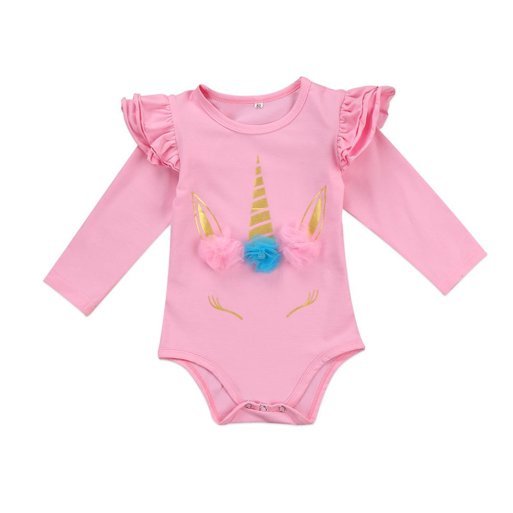 Keep little one comfy and cozy with this fantasy unicorn romper featuring cotton-blend material, unicorn and dots print add extra sweet charm!